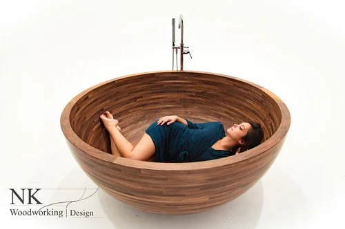 A bonus tub round! This one isn’t technically a type of tub, but it is a chance for us to talk about the incredible, jaw-dropping tubs designed by NK Woodworking Design. They have been featured in Best of houzz, The Seattle Times Pacific NW Magazine, and Mountain Living. And our winner from their exceptional body of work is the Round Walnut bath, pictured below.