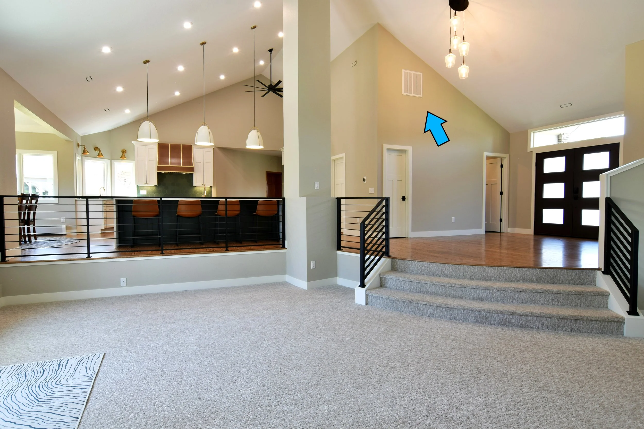 The result is a true open concept for the entire main level, complete with 24-foot vaulted ceilings - instead of the initially planned 10 ft ones. See for yourself!