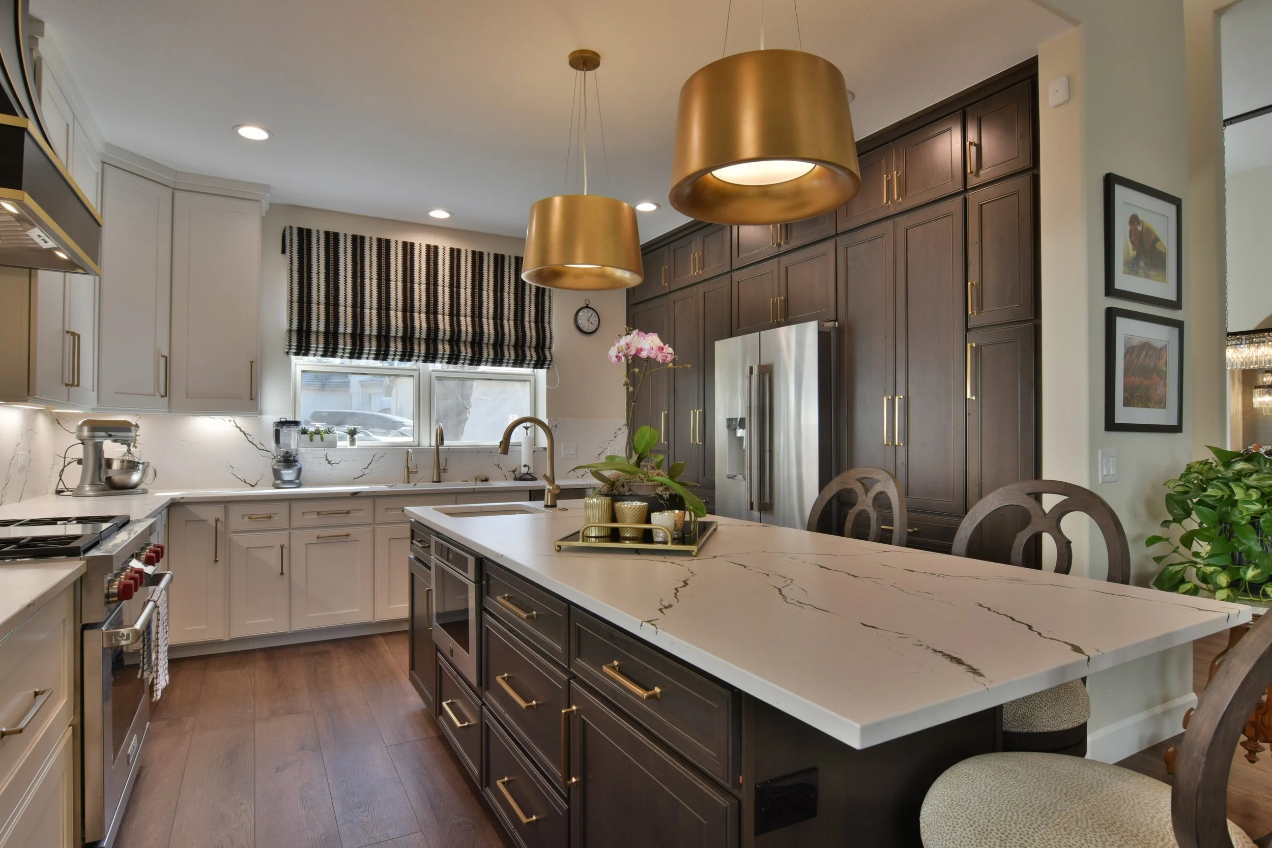 This home renovation, located in the heart of the DTC, was a full home remodel. Our team masterfully renewed the kitchen, dining room, master bathroom, and provided upgrades throughout the entire main level of this home. This remodel, designed by our friends at Denver Design Group, is STUNNING. Let’s dive in, shall we?
