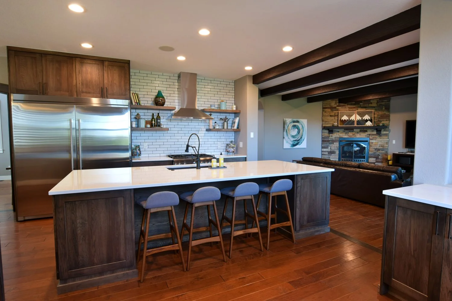 This is especially popular in some of our service areas like Golden and Morrison, where cozy mountain-inspired interiors meet modern finishes. It’s rustic charm… but leveled up.